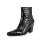 The Jackson boots are handcrafted in calf leather with a crocodile print. They have a more pointed toe than other models like the Unique or Chained boots.